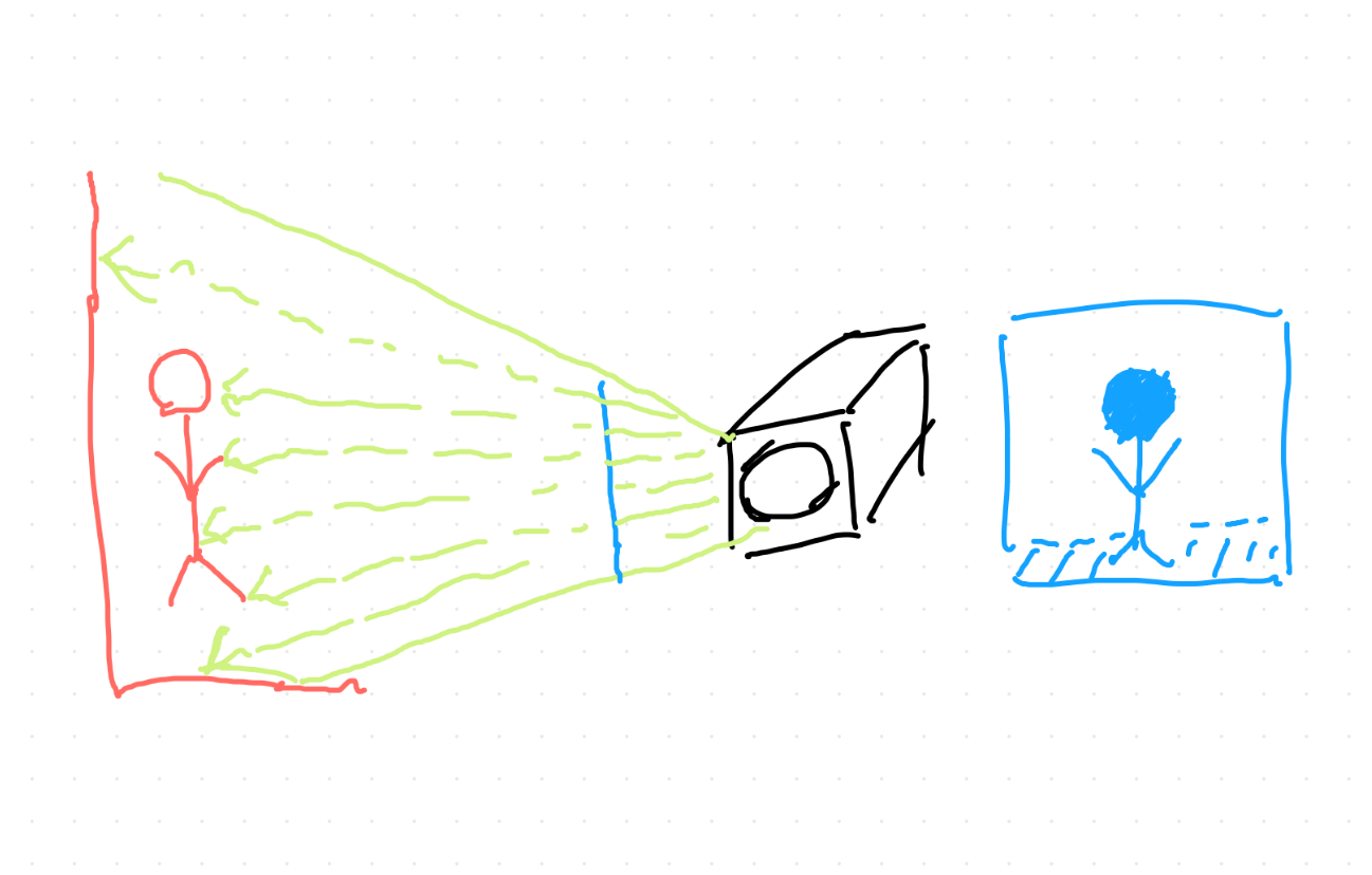 概念としては、図のようにカメラの目前にある板越しに各ピクセルごとにカメラからの距離がわかるようになっています。